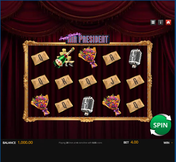 The game unfolds on a standard 5×3 reel grid with 20 fixed paylines, meaning every spin utilizes all available lines. The betting structure is flexible, catering to a range of player preferences. The symbols are directly tied to the celebratory presidential theme, creating a cohesive aesthetic. High-paying symbols include a classic microphone, a multi-tiered birthday cake adorned with candles, a jewel-encrusted ring box, and a festive champagne display. Lower-paying symbols are represented by card ranks – Ace, King, and Queen – styled as official correspondence, reinforcing the presidential motif. The Wild symbol is represented by a bottle of champagne, a fitting emblem of celebration and good fortune. It serves the crucial role of substituting for all regular paying symbols, thereby increasing the potential for winning combinations across active paylines. Its presence is key to unlocking larger wins within the base game.