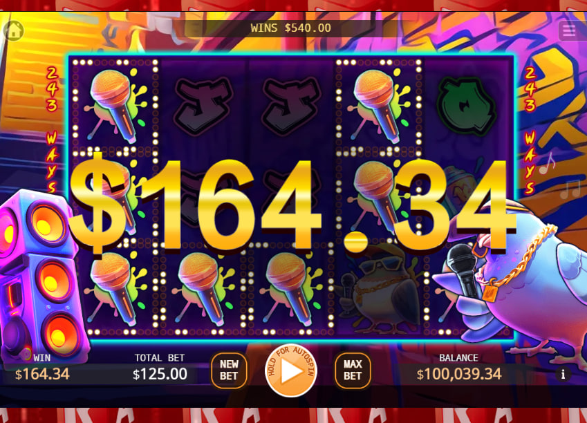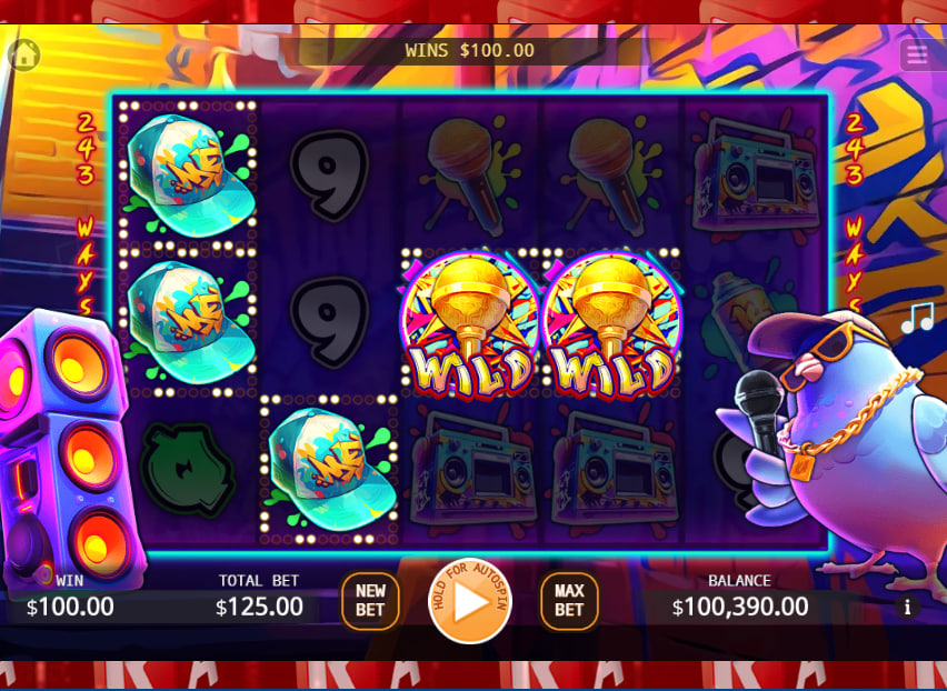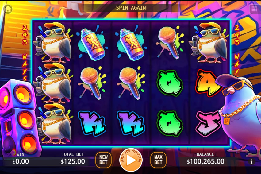 Hip Hop Pigeon operates on a 243 ways-to-win structure, meaning wins are calculated across any adjacent symbol combinations instead of relying on fixed paylines. This provides more opportunities to win and enhances the overall excitement of the game. The core gameplay is simple, making it accessible to new players while offering enough depth to retain experienced players.