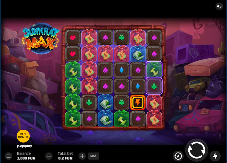 Popiplay, a studio steadily carving out a niche with its visually appealing and feature-rich online slots, presents Junkrat Max. This 6×6 grid slot plunges players into the chaotic scrapyard laboratory of Dr. Max, an eccentric rat scientist obsessed with crafting his next ingenious invention. With a high volatility rating and a maximum win potential of 25,000x the bet, Junkrat Max promises an electrifying experience for those who appreciate detailed theming and dynamic gameplay. The game's aesthetic skillfully blends a scrapyard environment with a touch of sci-fi, creating a unique visual landscape that is both gritty and imaginative. From buzzing batteries to salvaged components, every element of the design contributes to an immersive and engaging atmosphere.