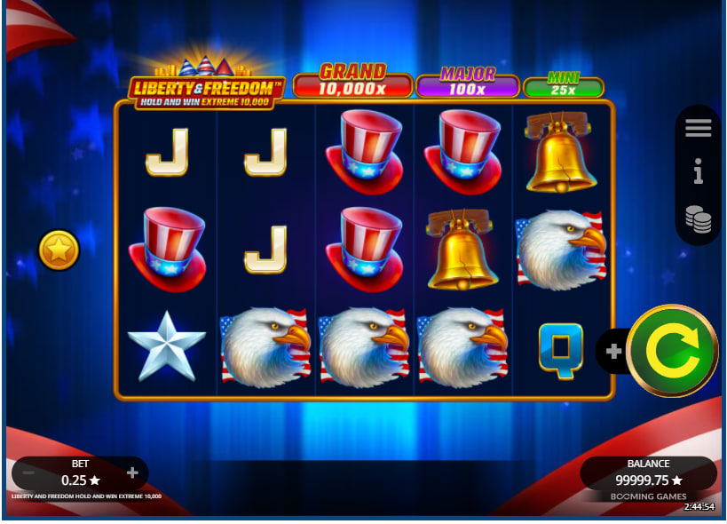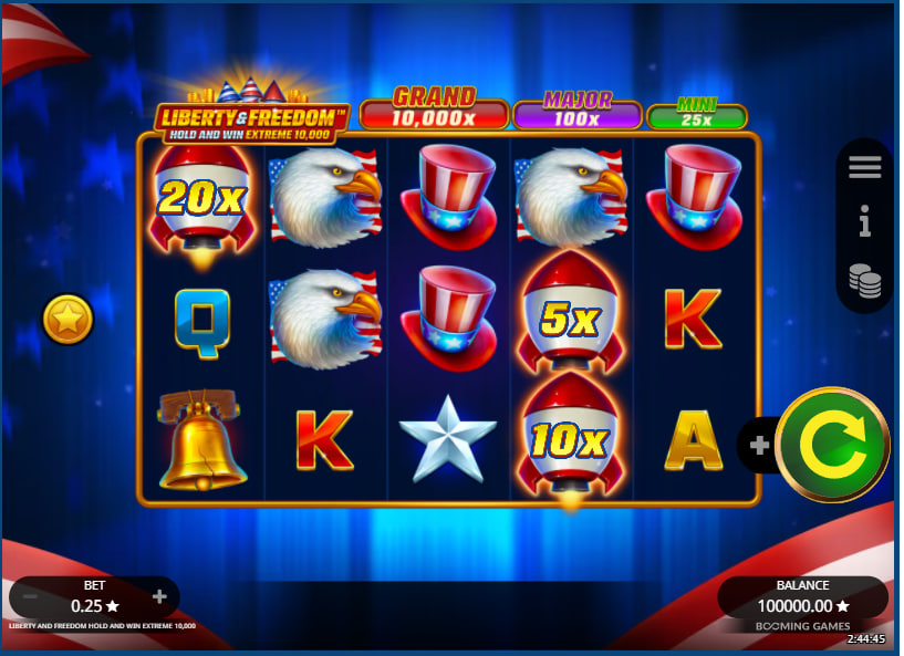 Liberty and Freedom by Booming Games offers a direct immersion into American patriotic motifs through its clear visual presentation. The game’s atmosphere is built upon iconic symbols like eagles and Liberty Bells, rendered in a bold, functional style. Gameplay unfolds on a 5×3 reel structure incorporating 25 fixed paylines for conventional symbol matching. The core game experience often centers on accumulating value symbols, which are pivotal for initiating the game’s significant bonus engagements. With a stated RTP of 95.1%, players can anticipate the statistical return over extended play. The primary attractions are the Liberty Bonus, a wheel-based feature, and the Hold and Win Extreme, which presents a multi-stage respin round. This latter feature incorporates an innovative multi-grid system where players unlock additional playing areas and can achieve value multipliers, culminating in potential substantial awards. The game structure emphasizes these dynamic bonus sequences over intricate base game complexities.