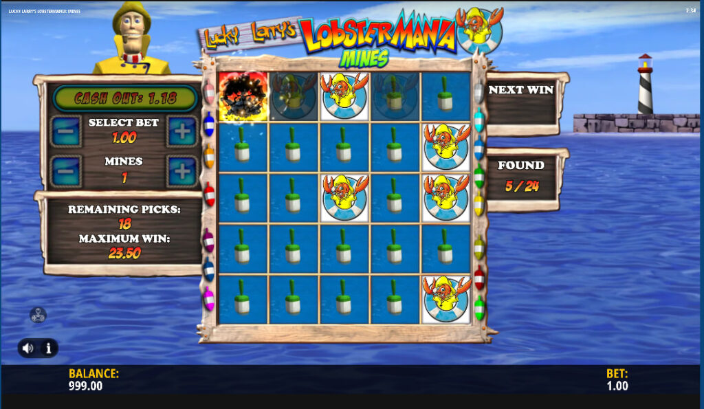 The ‘Remaining Picks' counter also plays a strategic role. It displays how many more Lobster Multipliers must be found to reach the ‘Maximum Win'. This number starts equal to the total number of Lobsters on the grid (25 minus the number of Mines) and decreases with each successful pick. Watching this counter helps players gauge how close they are to the maximum potential payout for their chosen setup, factoring into the decision of whether to Cash Out or continue. The interplay between the current ‘Cash Out' value, the potential ‘Next Win' increment, the ‘Remaining Picks', and the player's own risk tolerance defines the moment-to-moment experience.