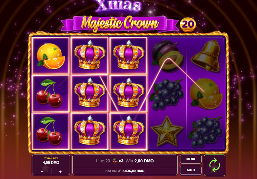 Xmas Majestic Crown 20 employs a familiar 3×3 grid layout, a classic choice that emphasizes simplicity and straightforward gameplay. This simplicity is a deliberate design choice, allowing players to focus on the strategic elements rather than being overwhelmed by complex features. The absence of excessive paylines makes it easier to track potential winning combinations. The game's core mechanic is built around a combination of standard fruit symbols, Christmas-themed additions like holly, and high-value symbols such as the majestic crown itself and star scatter symbols.