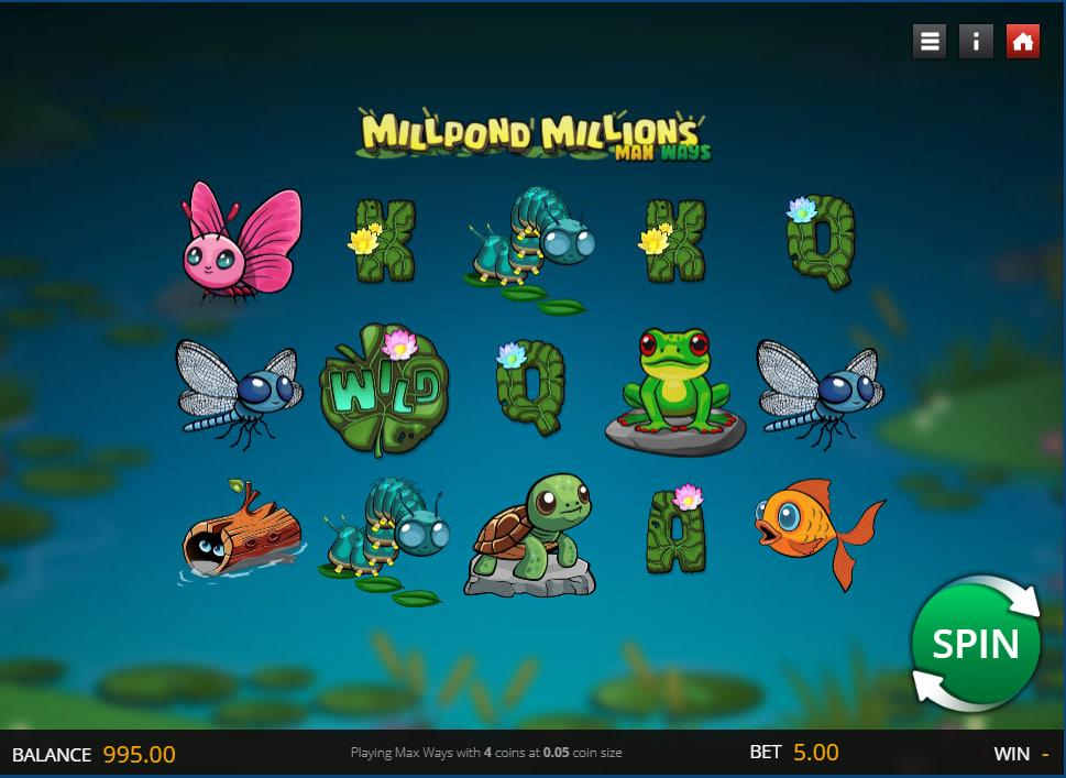 Section8 Studio's Millpond Millions slot presents a cheerful escape into a cartoon pond environment, distinct from typical nature-themed slots through its focus on charmingly rendered aquatic and insect inhabitants. Instead of aiming for photorealism, Millpond Millions embraces a deliberately cartoonish aesthetic, which might initially seem simplistic but reveals layers of playful detail upon closer inspection. This approach sets it apart from many slots that strive for visual grandeur, opting instead for a lighthearted and accessible presentation. The core appeal of this game resides in its feature game, a respin-based bonus round where symbols stick to the reels, a mechanism that can escalate anticipation as each spin potentially adds to the accumulating wins.