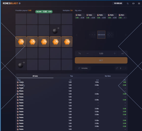Mines Blast is an intelligently designed game of chance that prioritizes player agency and strategic risk assessment over passive observation. Its departure from standard slot mechanics is its greatest strength, offering a mentally stimulating alternative. The direct correlation between player choices in mine density and cell selection, and the subsequent risk/reward outcome, is compelling. The inclusion of advanced autoplay conditions, a robust ranking and customization system, and transparent social leaderboards further elevates the experience beyond a simple instant win game.