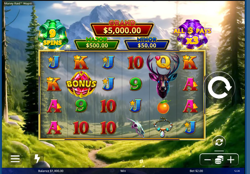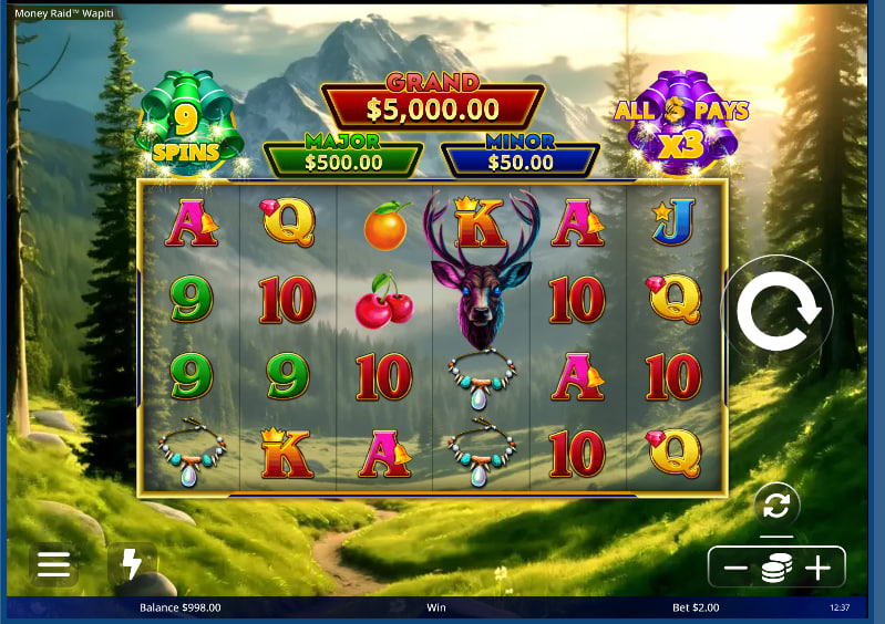 Money Raid Wapiti by Light & Wonder presents a rugged North American wilderness tableau, interwoven with a distinct pursuit of riches. The game eschews overt narrative complexity, instead focusing player attention on a series of interconnected accumulation and bonus features. Its visual style is functional, with clear iconography against a dark, unobtrusive background, ensuring that the on-reel action remains the primary focus. The aesthetic is less about immersive world-building and more about providing a clear framework for its multifaceted gameplay. This slot aims to engage through its potential for escalating rewards, built upon persistent trackers and distinct free spin variations.