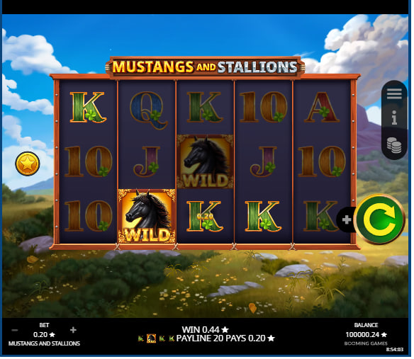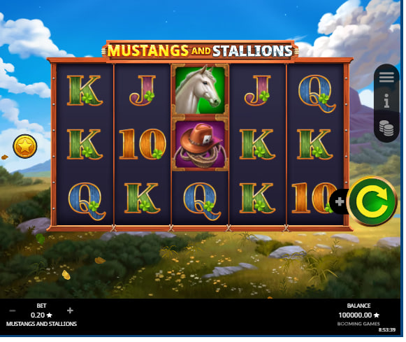 Booming Games' “Mustangs and Stallions” plunges players into the vast, sun-drenched plains of the American West, a landscape synonymous with freedom and untamed spirit. This 5-reel, 3-row video slot, featuring 20 fixed paylines, skillfully captures the raw beauty of wild horses and the rugged allure of cowboy life. From the outset, the game’s visual presentation evokes a sense of open horizons and boundless potential. The backdrop depicts rolling hills under a clear blue sky, dotted with sagebrush and wildflowers, creating an immersive environment that feels both serene and charged with latent energy, much like the powerful creatures it celebrates.