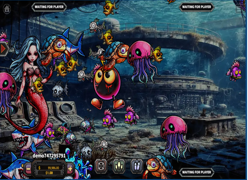 The denizens of this drowned laboratory are varied. Lesser abominations, like the skeletal fish (3x multiplier) or the common mutated swimmer (2x multiplier), offer modest returns. More formidable adversaries include the predatory shark (60x) and the strangely alluring yet corrupted mermaid (100x). At the apex of this food chain reside the multi-appendaged, gas-masked Octopus (a substantial 300x) and the presumed architect of this catastrophe, the Mad Scientist (200x). The game accommodates multiple participants, transforming the shooting gallery into a competitive or cooperative hunt, depending on the players' approach to shared targets and resources. Payouts are determined by multiplying the base bet by the creature's designated multiplier.