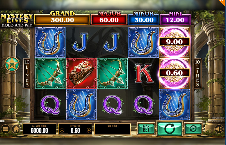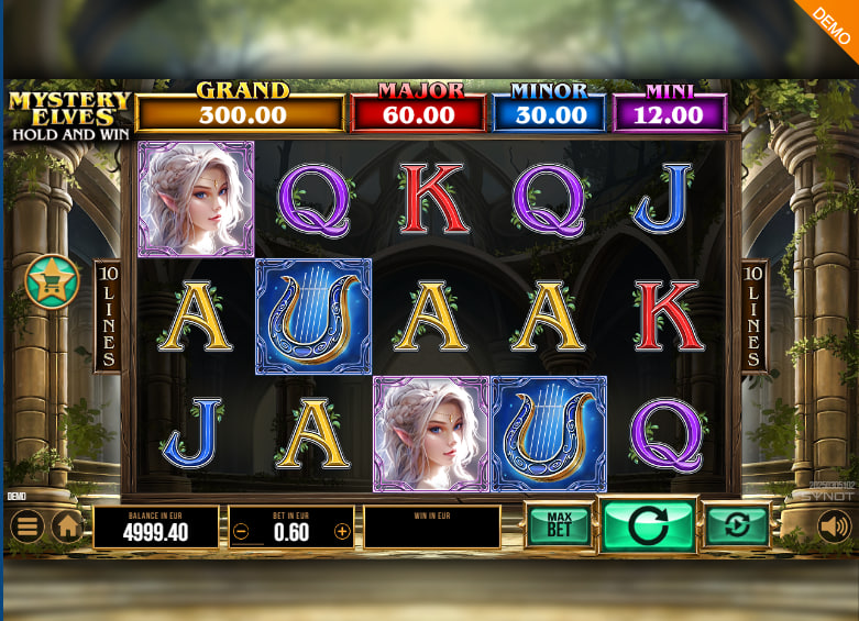 Mystery Elves by SYNOT Games crafts an experience within a serene fantasy realm, detailed with ethereal elven characters and timeworn, subtly illuminated ruins. The game operates on a 5×3 reel configuration, featuring 10 fixed paylines that dictate its fundamental winning structures. While the base game provides standard win opportunities, augmented by the presence of Wild symbols, the significant gameplay revolves around its detailed Hold and Win feature. This central bonus mechanism activates upon landing six or more Bonus symbols, ushering players into a respin sequence on an alternate reel grid. Within this round, Bonus symbols become adhesive, resetting the respin tally, and can unveil direct monetary rewards, one of four fixed jackpots (MINI, MINOR, MAJOR, GRAND) through Mystery symbols, or amplify values via Multiplying Bonus symbols. With a declared RTP of 96.01%, Mystery Elves focuses player attention on this multi-layered bonus. The Hold and Win feature concludes with the transformation and aggregation of all collected Bonus symbol payouts. This design centers the game’s main appeal on its distinctive respin and collection mechanic.