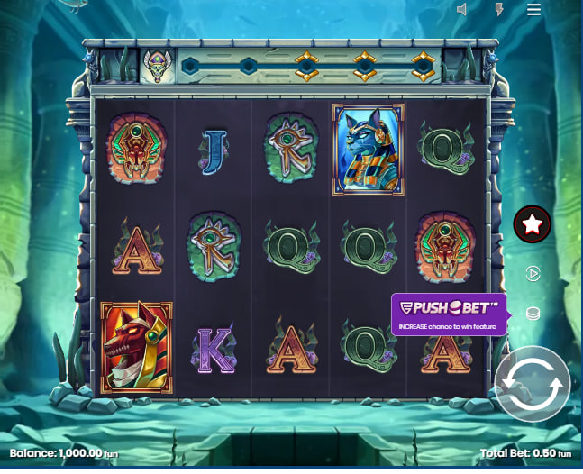 Push Gaming invites players to reconsider the familiar sands of Ancient Egypt, submerging the expected pyramids and pharaohs beneath the titular river's depths. “Mystery of the Nile” offers a visually distinct presentation, where stone reels adorned with hieroglyphs rest against a backdrop of sunken temple ruins, with faint aquatic life drifting by. The aesthetic is sharp, characteristic of Push Gaming's production quality, creating an atmosphere that is less about arid desert heat and more about the enigmatic allure of a lost, water-logged civilization. This subtle thematic shift is complemented by an auditory landscape designed to enhance the submerged, mystical feeling.
