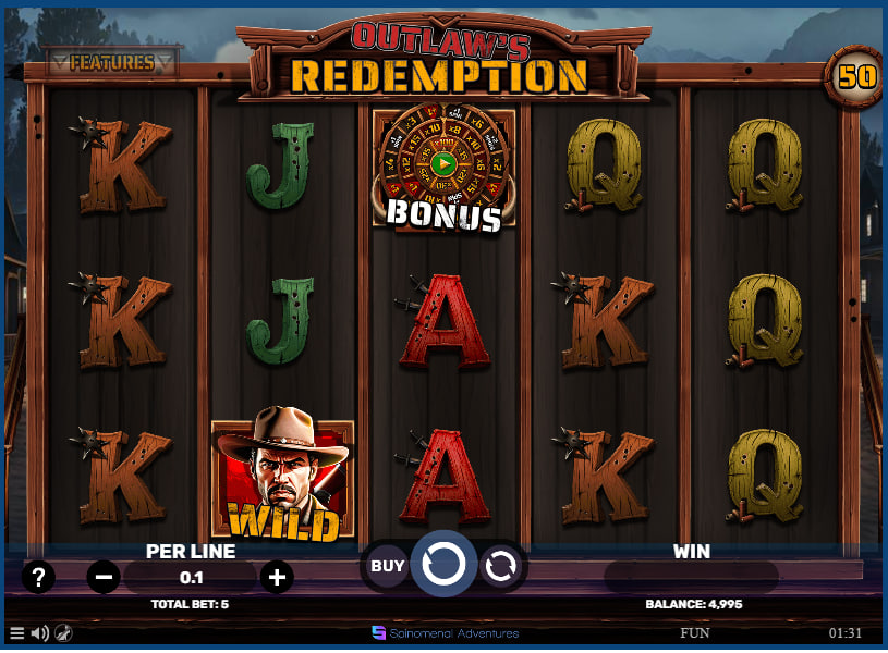 “Outlaw’s Redemption” by Spinomenal offers a rugged Western theme with a functional, gritty atmosphere set against a classic frontier backdrop. The game operates on a 5×3 reel layout with 50 fixed paylines, forming the foundation for its core gameplay. Its primary appeal stems from a rich combination of interconnected bonus mechanics. Players will find Countdown Wilds that trigger respins, adding dynamic sequences to the base game. The Free Spins feature introduces player agency, allowing selection of a reel for a sticky expanding Wild. A distinct multi-level Bonus Wheel provides another avenue for rewards through multipliers and level progression. This slot focuses on mechanical depth over elaborate narrative, suiting experienced players seeking feature-rich sessions.