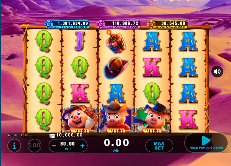 The central reel area (reels 2, 3, and 4) is where the Cowboy Pig Wild symbols come into play, and they represent a significant dynamic element. There are three distinct Cowboy Pig Wilds, each appearing exclusively on one of these three central reels. These symbols perform the conventional substitution role, replacing all other icons except the Wolfie Scatter to complete or enhance winning lines. However, their true impact stems from their expansion capability.