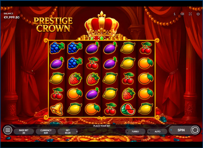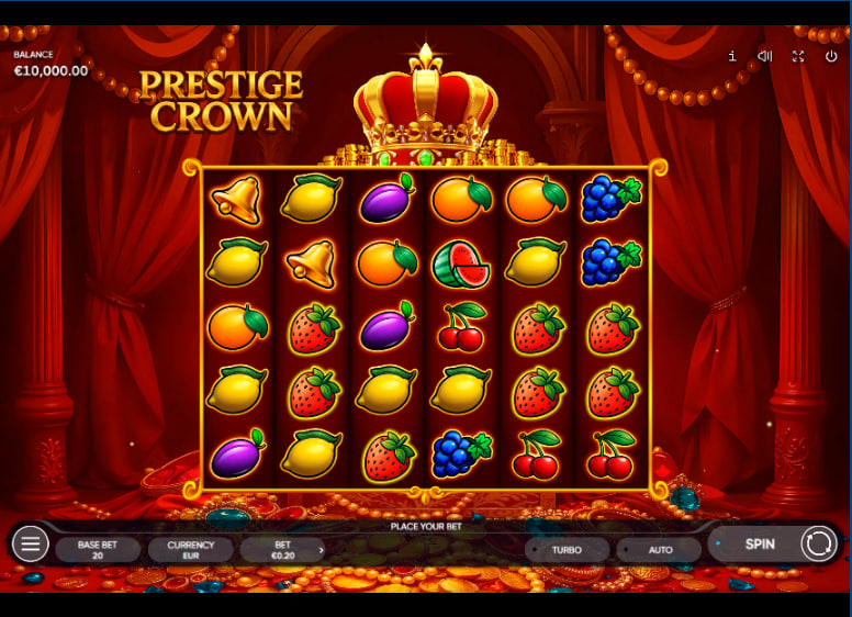Endorphina, a developer known for its visually rich and engaging slot experiences, presents “Prestige Crown.” This 6-reel, 5-row slot game beckons players into a world of opulence, draped in crimson velvet and adorned with glittering jewels, all under the watchful gaze of a majestic golden crown. Far from a mere aesthetic exercise, Prestige Crown distinguishes itself through a compelling blend of familiar fruit slot charm and innovative mechanics that can lead to substantial rewards. For the discerning player seeking a sophisticated yet potentially lucrative gaming session, this slot warrants a closer inspection.