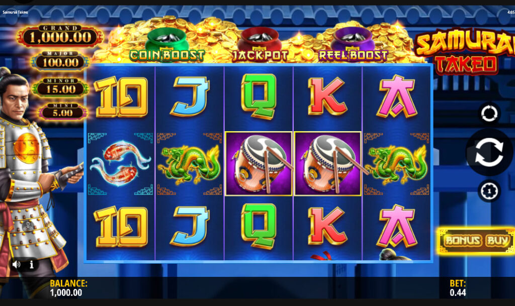 IGT presents Samurai Takeo, an online slot utilizing a standard 5×4 grid structure within a familiar Samurai and Asian cultural setting. The game’s core engagement stems not from its visual presentation, but its intricate system of layered bonus features. Gameplay centers around landing Green, Red, or Purple coins, each randomly triggering distinct core bonuses: Coin Boost, Jackpot Feature, or Reel Boost. These features introduce free spins, a gem collection mechanic for fixed jackpots, and an expansion to 50 paylines, respectively. Further complexity arises when combinations of coins potentially trigger enhanced Super Features or the comprehensive Mega Feature, merging the functionalities of the core bonuses. This multi-tiered feature activation defines the experience, moving beyond simple line pays. Samurai Takeo is designed for players who value detailed mechanical interactions and the pursuit of combined feature rounds.