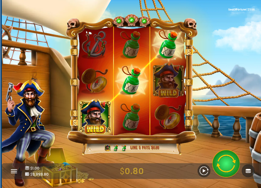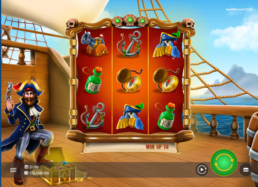 The foundation of Sea of Fortune is its 3×3 grid and 5 fixed paylines. This classic format inherently creates a faster-paced session compared to larger 5×5 or Megaways grids. Payouts occur for three matching symbols on a line, from left to right. The game's symbol hierarchy is concise, which is appropriate for a 3-reel system. The paytable consists of just four primary symbols: three standard paying icons and the Pirate Wild.