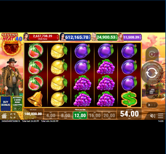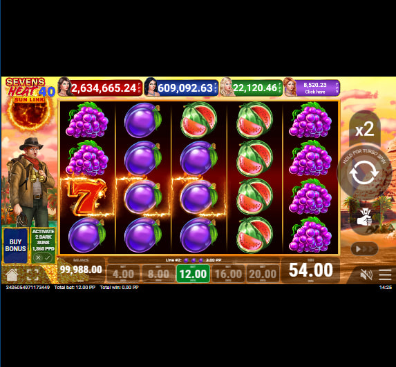 The theoretical RTP (Return to Player) for “Sevens Heat 40 Sun Link” is stated to be 96.35%, a competitive rate within the industry. It's also important to note that the RTP can slightly vary depending on the chosen bonus buy-in option, with different buy options offering theoretical RTPs of 96.36% and 96.04%. The minimum bet is set at 4.00 PPD, and the maximum bet reaches 1,000 PPD, catering to a broad spectrum of player budgets.
