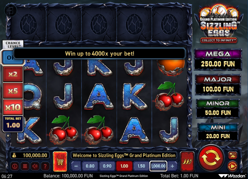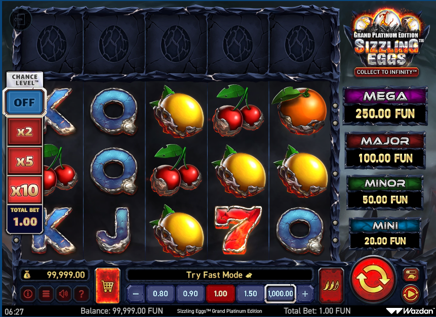 Wazdan's “Sizzling Eggs™ Grand Platinum Edition” presents a curious amalgamation of themes, merging the high fantasy of dragons and volcanic lairs with the deeply traditional iconography of fruit slots. This title is not a simple reskin but a carefully constructed machine built around a persistent collection mechanic that fundamentally alters the rhythm of both its base game and bonus rounds. The game’s character is defined not by its narrative, but by its intricate system of Special Symbols, most notably the Collect to Infinity™ feature, which operates as the central pillar of its design. For the seasoned player looking for free slots that offer mechanical depth, or those wishing to understand complex features before committing real funds, this game provides a substantial framework to analyze.