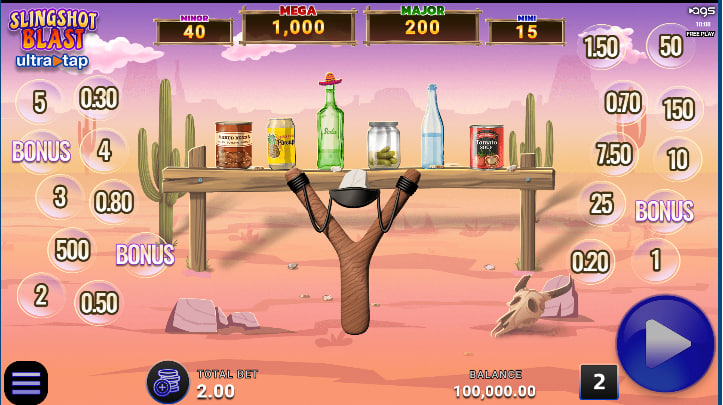 Slingshot Blast UltraTap by AGS introduces a gameplay concept that stands apart from conventional reel-based machines. The game’s theme is built around a western desert target-shooting gallery, creating a straightforward and engaging atmosphere. Instead of a standard reel layout, the screen presents a single, interactive scene with a slingshot and a series of breakable items. The core game loop involves launching a projectile to break targets, with wins occurring from single or multiple hits in one shot. Its mathematical design is noteworthy, as the rules specify the game’s stated RTP is most accurately achieved at the minimum bet level. The primary attraction is the Jackpot Pick Bonus, activated by hitting three specific “BONUS” targets in a single round. This feature is enhanced by a separate Random Multiplier that can boost standard payouts. This structure delivers a fast-paced, arcade-style experience for players. The game’s appeal comes from its direct, interactive action rather than traditional symbol alignment.