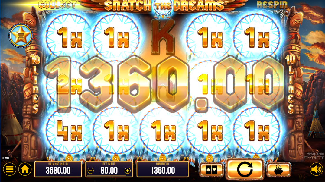 The Collect and Respin mechanics work in tandem with these modifiers. When a Collect symbol appears on the third reel, it totals all dreamcatcher values present. The Respin feature takes this further by locking dreamcatchers in place and continuing until no new dreamcatchers land.