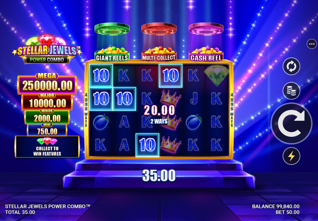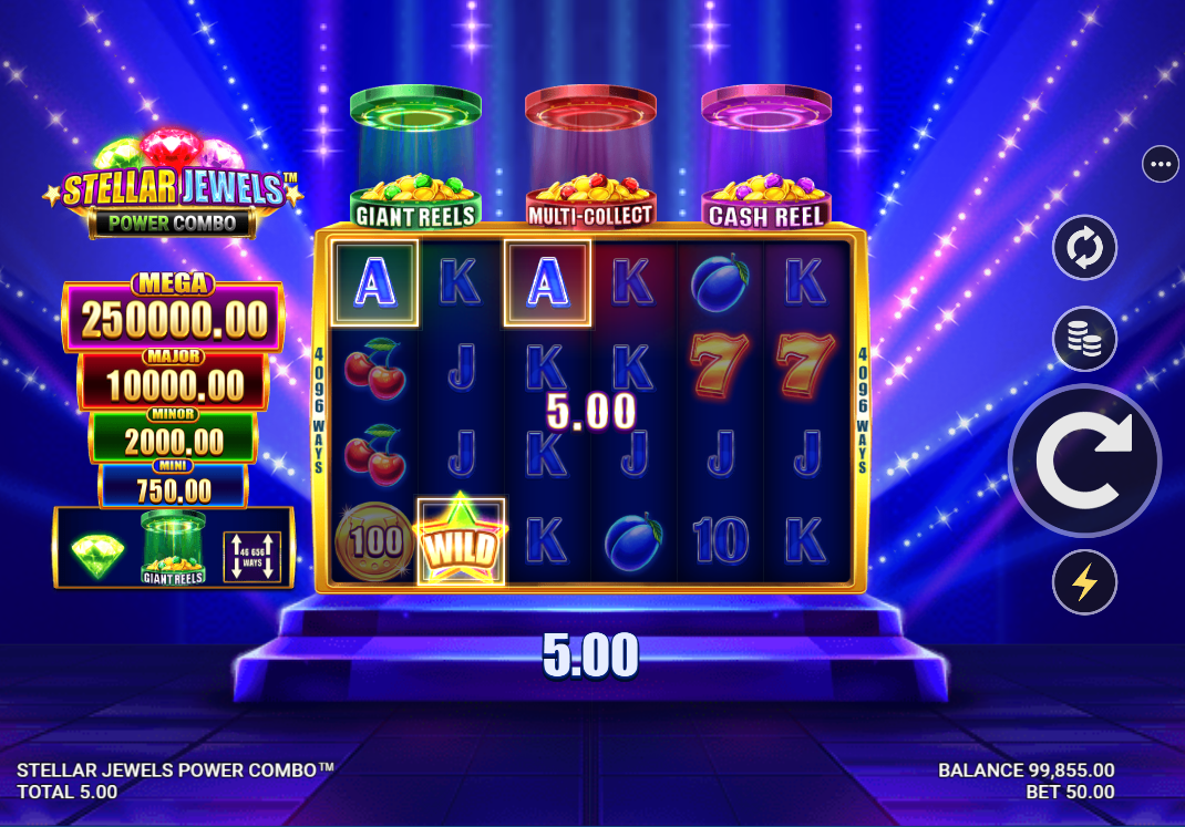 At the heart of Stellar Jewels Power Combo lies an intricate system of three distinct features that work in harmony. The game introduces an innovative token collection mechanism where Giant Reels, Multi-Collect, and Cash Reel tokens can trigger independently or combine for enhanced gameplay sessions. This creates a layered experience where each spin carries multiple possibilities for feature activation.