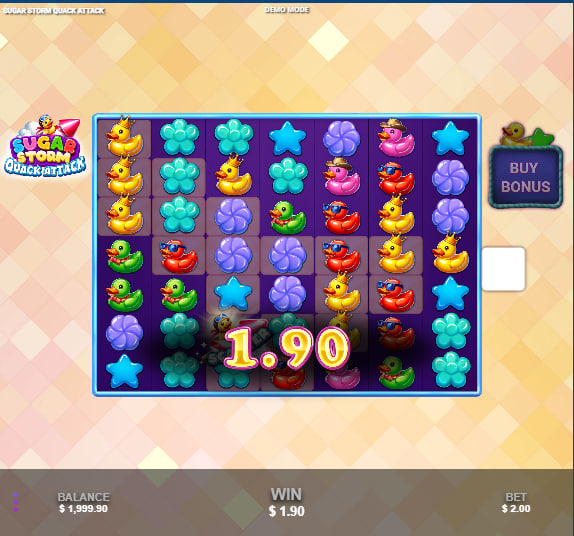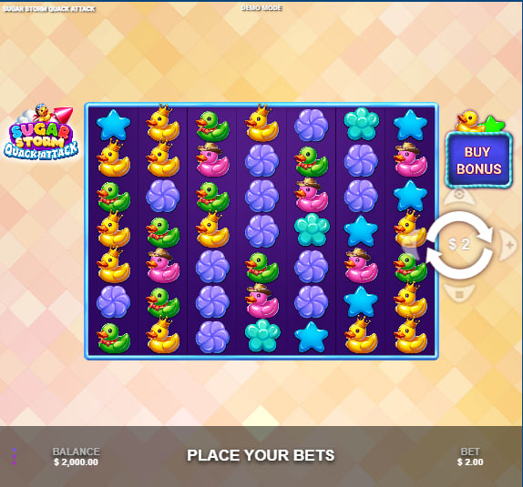 For players who prefer a more direct route to the action, Sugar Storm Quack Attack also offers a Buy Bonus option. This feature allows players to instantly trigger either the standard Free Spins round or a special “Juicy Free Spins” round. The standard Free Spins can be purchased for 75 times the current total bet. The Juicy Free Spins, which offer an enhanced multiplier system, can be bought for 135 times the current bet. This option provides a shortcut for those seeking immediate bonus engagement, though it comes at a premium.
