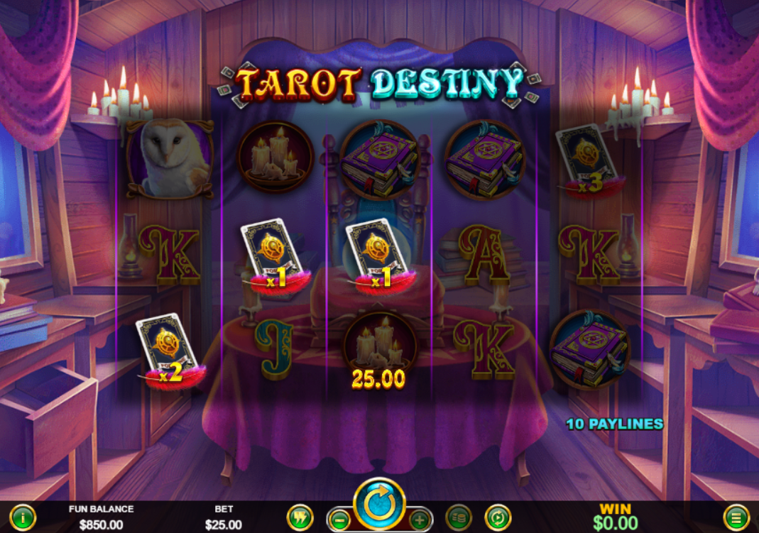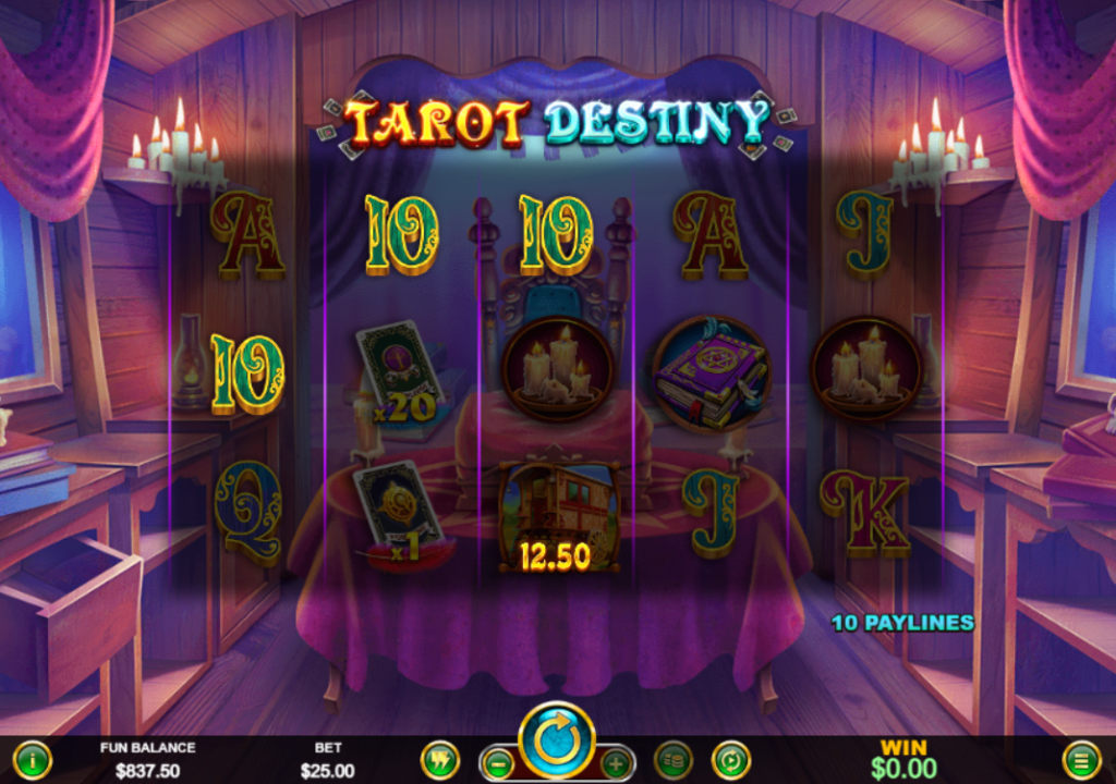RTG’s Tarot Destiny presents a mystical fortune-telling theme set inside a traveling gypsy wagon. Released in January 2023, this video slot features a classic 5×3 layout with 10 fixed paylines. The game stands out with its unique Hold and Spin feature triggered by crystal balls, guaranteeing minimum 20x wins and potential chest rewards up to 1000x. Players can trigger up to 20 free spins with an innovative wild collection system, offering multipliers that increase up to 10x. With medium volatility and 95% RTP, Tarot Destiny caps wins at 5000x the stake. The betting range accommodates various players, spanning from $0.10 to $25 per spin.