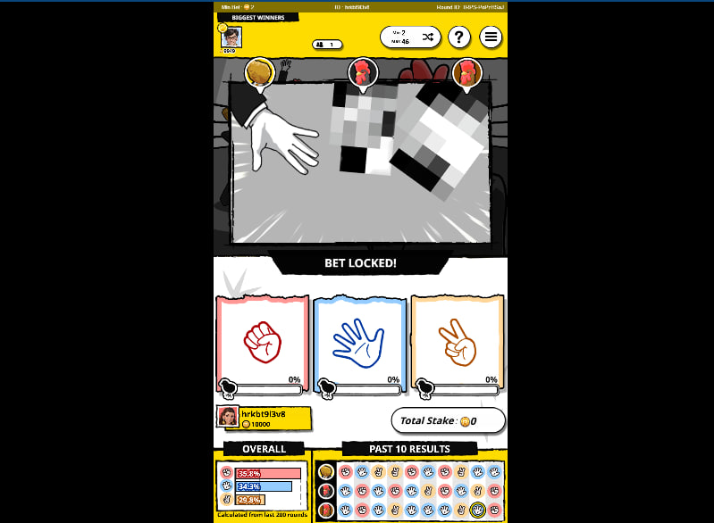 Player controls are straightforward, facilitating quick decision-making. Options to select chip values, repeat previous bets, undo actions, cancel all bets, or double existing bets are all readily accessible. This user-friendly interface ensures that the focus remains on the strategic choice of gesture rather than navigating complex betting systems. The true player agency lies in interpreting the provided statistical data and deciding whether to play based on perceived patterns, counter-strategies, or pure intuition, all while understanding the fixed probabilities of the base game and the lucrative, albeit random, potential of the Golden Hands feature. The game doesn't just ask for a random pick; it invites a more considered approach, blending luck with a light layer of predictive analysis.