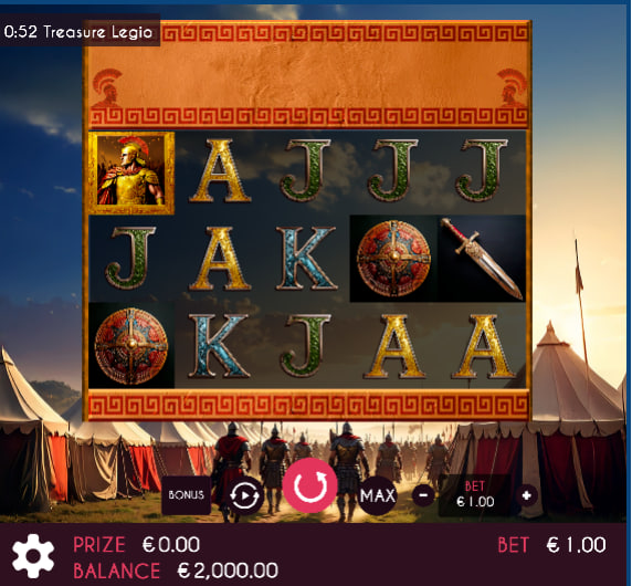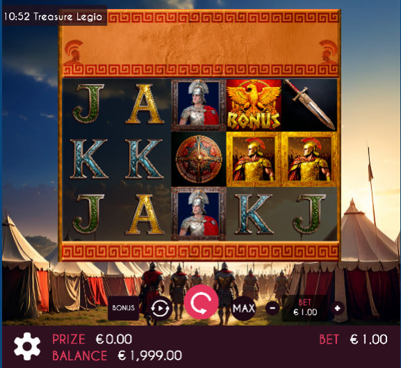 Treasure Legio by Triple Cherry deploys a Roman military theme, setting the action within a legionary encampment. The game utilizes a standard 5-reel, 3-row grid with 25 fixed paylines governing wins. Core gameplay in the base game introduces random Respins and a Transformation feature where Golden Soldier symbols convert to Wilds. A significant aspect is its variable Return to Player, which operators can set anywhere from 88.35% to an advantageous 97.54%. This slot likely demonstrates medium to high volatility, suggesting varied payout patterns. Landing three Bonus symbols on the middle reels activates the Free Spins round, granting 10 initial spins on special reels. Within this phase, two distinct bonuses appear: the Wild Tower, capable of turning an entire reel Wild, and an instant Prize feature offering up to 80 times the player’s bet. These mechanics combine to create a structured yet potentially dynamic experience for slot aficionados.