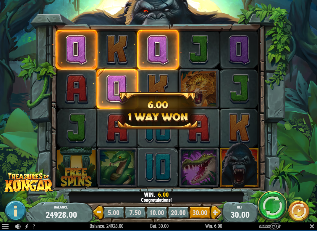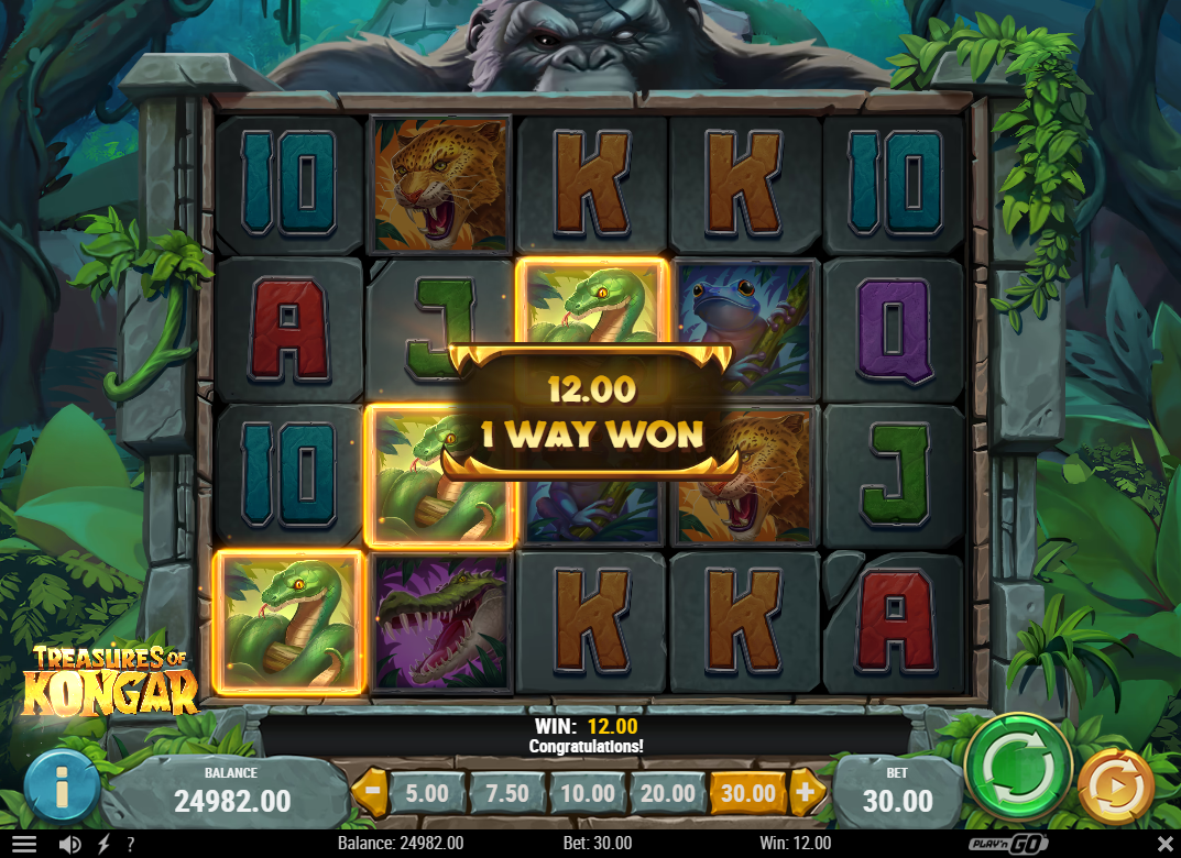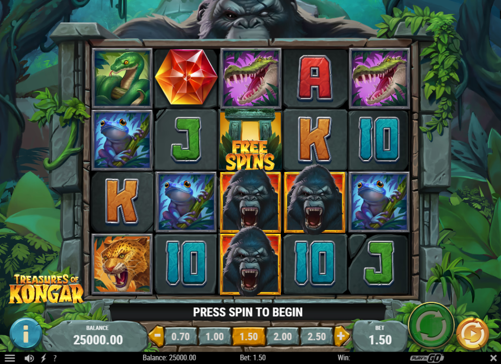 Treasures of Kongar, a January 2025 release from Play’n GO, introduces a mighty ape guardian protecting his golden temple treasures across a 5×4 grid with 1,024 ways to win. The game features medium-high volatility and multiple RTP configurations up to 96.2%, offering winning potential of 15,000x the stake. The Kongar Coins feature randomly triggers when Gemstones land, adding multiplier wilds up to x3 in the base game. During Kongar’s Riches free spins, multipliers increase to x5, while the main character symbol upgrades for enhanced payouts. The jungle atmosphere combines with dynamic animations and a custom interface to create an engaging monster-themed slot experience. The mathematical model balances accessibility with volatility through a betting range of 0.10 to 100 credits per spin.