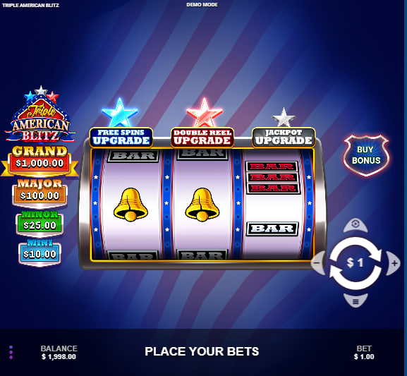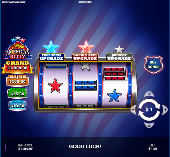 For players seeking immediate engagement with the core bonus mechanics, Triple American Blitz offers a “Buy Bonus” option. This feature allows players to directly purchase entry into the Bonus Feature for a fixed price, typically 40 times the current total bet. Upon purchasing, the game guarantees an activation of the Bonus Feature. The game will award one or more Bonus Symbols (the stars), thereby determining which upgrade(s) will be active for the ensuing 7 or 14 free spins. This provides a shortcut, bypassing the base game grind, for those willing to make the upfront investment. The specific combination of upgrades received through the Buy Bonus is still subject to a degree of randomness, although a trigger is assured.