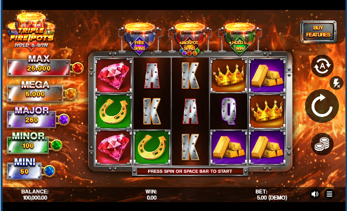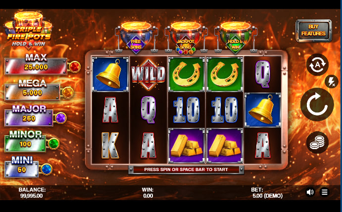 Triple Fire Pots immediately immerses the player in an environment crackling with primal energy. The backdrop is a visually rich tableau of molten rock and dancing flames, creating an intense, almost palpable heat. This fiery aesthetic is not merely superficial; itโs woven into the very fabric of the game, from the glowing embers that frame the reels to the dynamic animations that accompany wins. The grid itself is presented as a robust, metallic structure, reminiscent of industrial furnaces, which contrasts effectively with the more organic, fiery elements.
