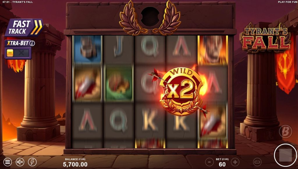 Tyrant’s Fall, developed by Slotmill, plunges into the heart of ancient Rome’s military might and political intrigue. This 5×3 video slot, with 20 paylines, presents a mature and gritty take on the historical theme. Its core gameplay revolves around a random multiplier wild system that can shift positions and create winning combinations. With a very high volatility and an RTP of 96.03%, Tyrant’s Fall caters to experienced players who appreciate strategic risk. The Free Spins Bonus offers a tiered system of accumulating wild multipliers up to 150x. Super Free Spins feature 2 moving wild symbols and even bigger win potential. The game integrates “Burst Mode” for faster gameplay, “Fast Track” for direct bonus access, and “Xtra-Bet” to increase the chances of triggering the bonus rounds, providing the experienced player with options to alter volatility and to go for very big wins.
