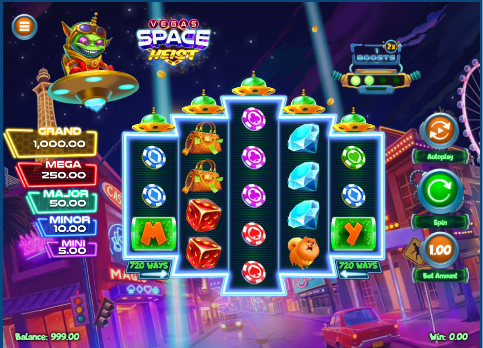 Qora Games presents Vegas Space Heist, a slot that immediately catches the eye not just with its thematic blend of extraterrestrial antics and Las Vegas glitz, but also with its distinctive 3-4-5-4-3 reel configuration. This structure alone sets it apart from more traditional online slots, promising a different kind of gameplay experience right from the outset. While the theme suggests a lighthearted adventure – perhaps a comical attempt to liberate riches from a space-bound vault – it's the underlying mechanics and bonus features that truly dictate whether this slot can deliver genuine engagement and entertainment. Vegas Space Heist advertises both-ways payouts, fixed jackpots, and a Super Spin bonus, hinting at a multifaceted gaming experience that warrants a closer examination to determine its actual depth and appeal for seasoned slot enthusiasts.