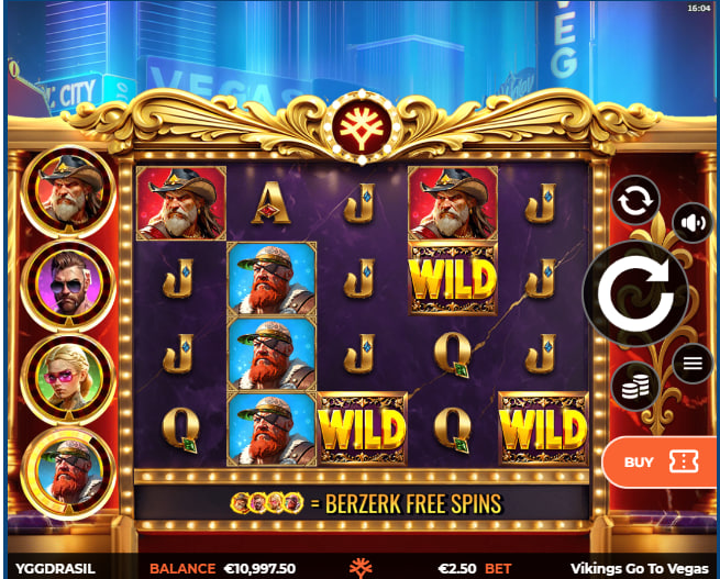 Yggdrasil Gaming presentsย Vikings Go To Vegas, a video slot that audaciously merges the rugged world of Norse warriors with the neon-drenched allure of Las Vegas. This is not a subtle blend; it is a full-throated juxtaposition where Viking longships might as well be docking at the Bellagio fountains. The visual execution combines the expected Viking character archetypesโbearded, fierce, and battle-readyโwith a backdrop of gleaming Vegas high-rises and casino glitz. The atmosphere is one of deliberate anachronism, aiming for a humorous and engaging collision of cultures rather than a historically grounded narrative.