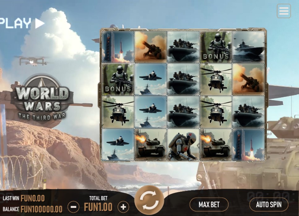World Wars: The Third War represents Urgent Games' venture into military-themed slot gaming, setting itself apart through its unique blend of modern and futuristic warfare elements. Released on November 28, 2024, this 4×5 slot configuration pushes beyond conventional military themes by incorporating advanced robotics and cutting-edge military technology alongside traditional warfare elements.