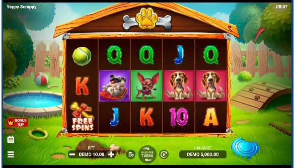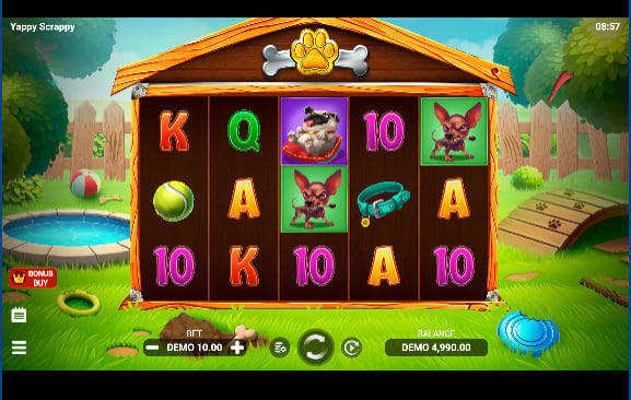 Yappy Scrappy operates on a 5-reel, 3-row grid, offering 20 fixed paylines for winning combinations. Wins are awarded for landing identical symbols on these paylines from left to right, commencing from the first reel. The game features a total of 11 regular symbols, bifurcated into lower and higher-value tiers.